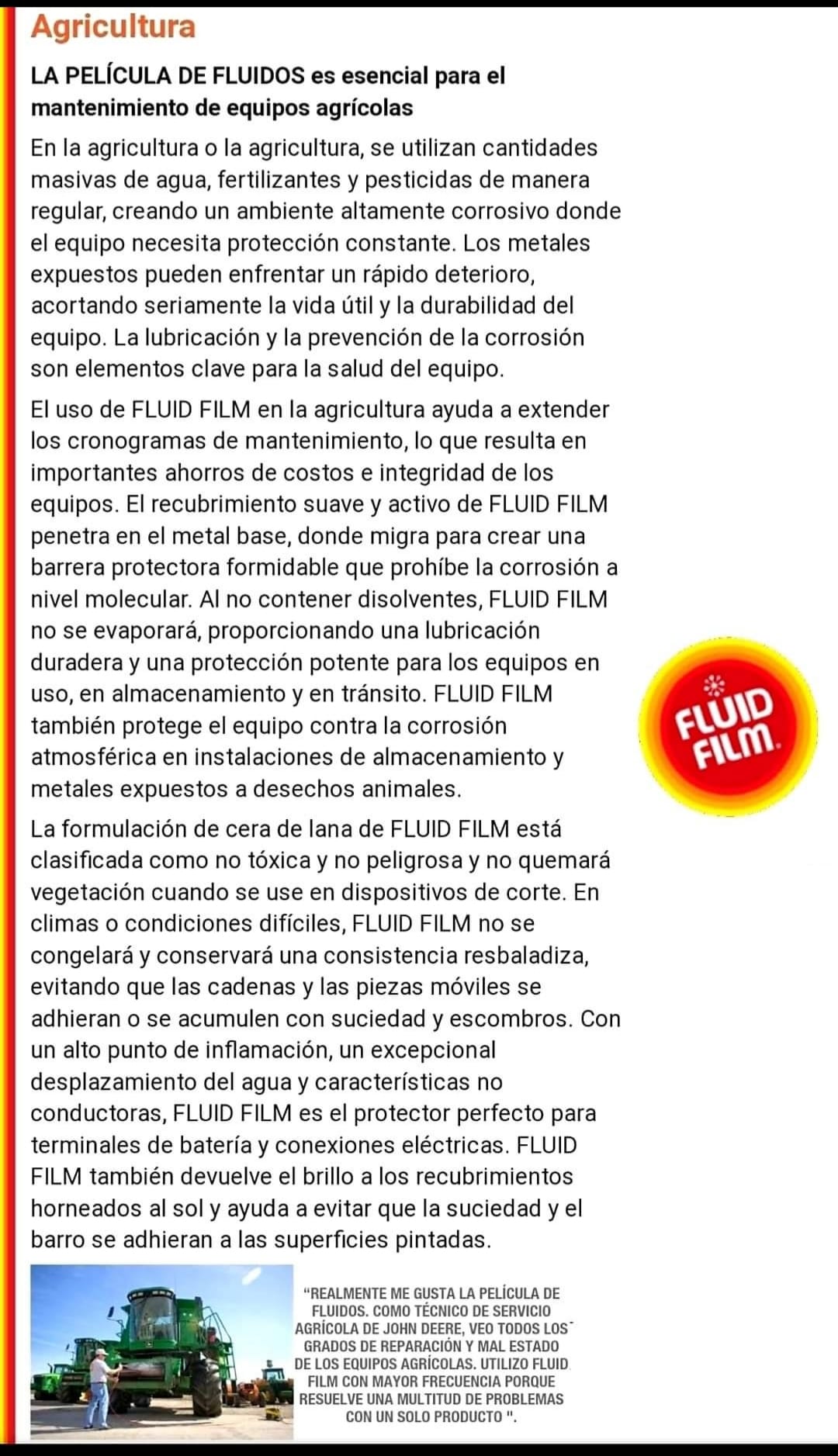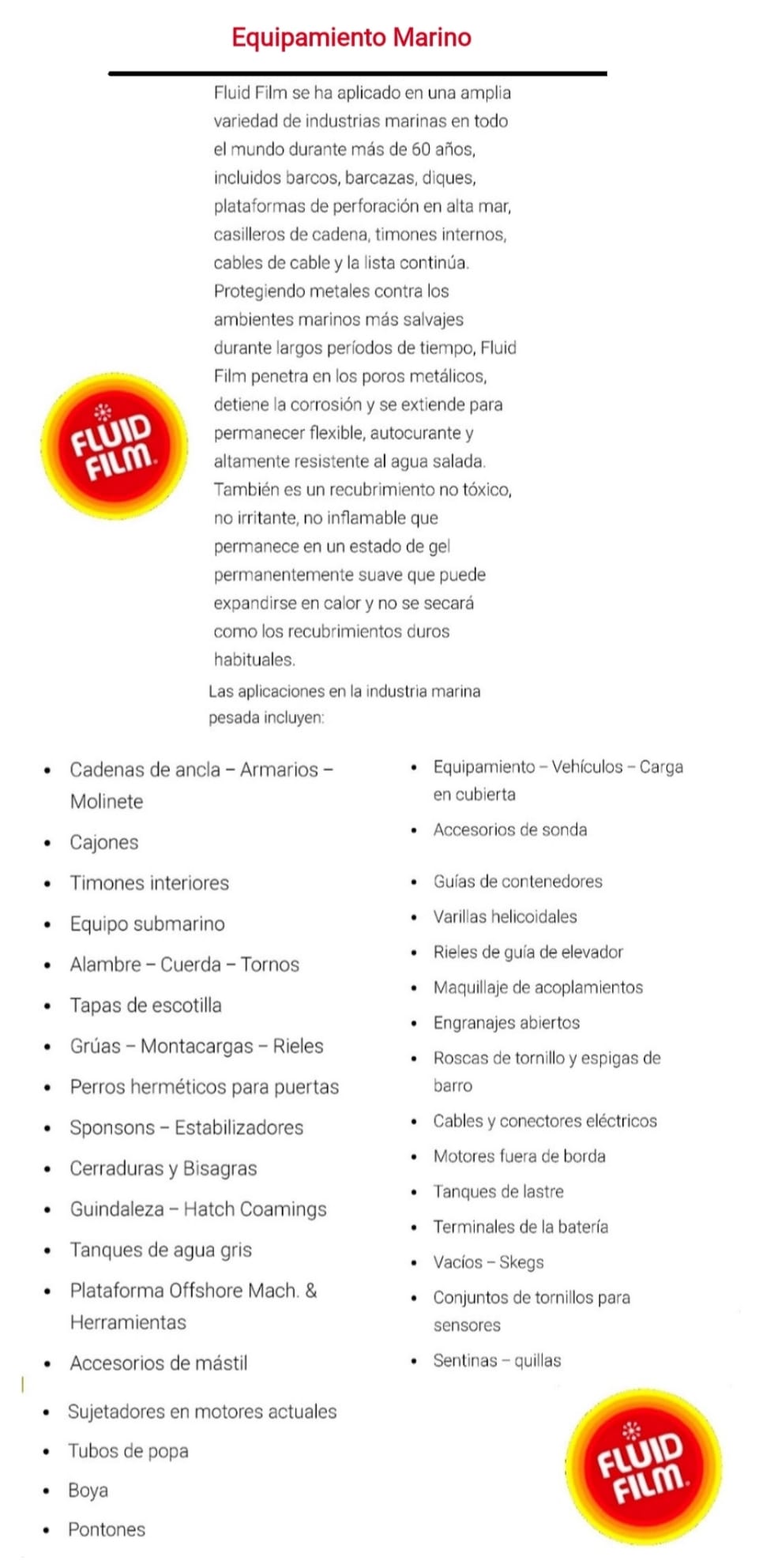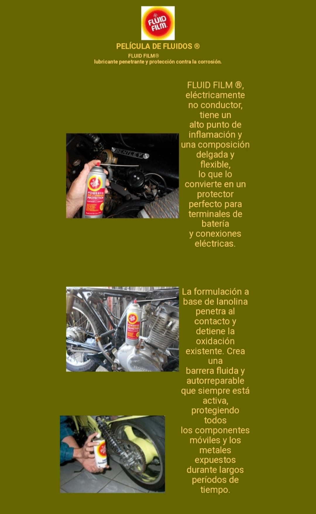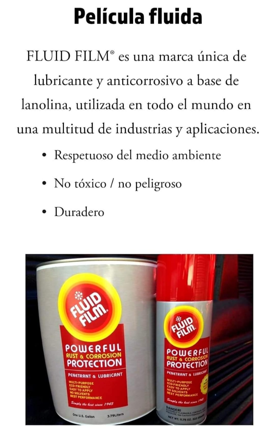 Si en los metales tiene problemas de corrosión, use Fluid Film y obtendrá la solución.