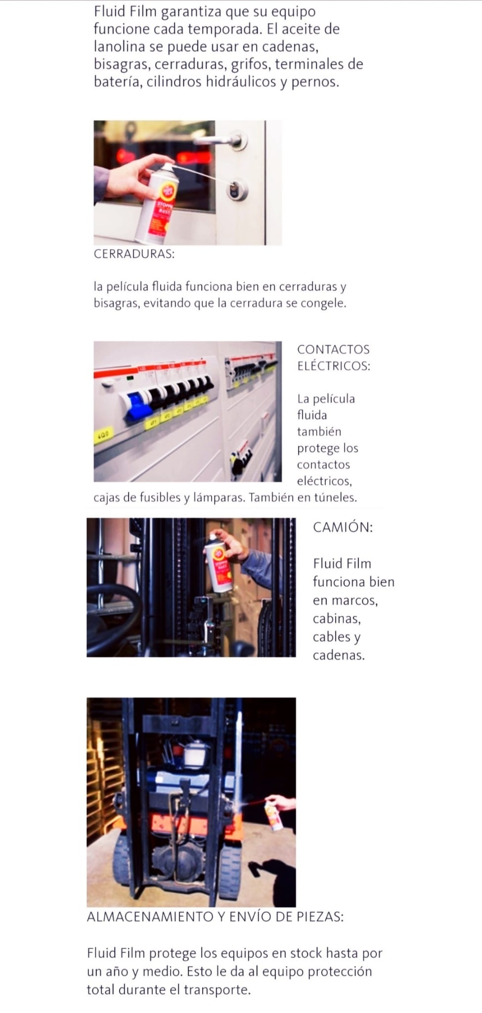 El secreto está en la base: la lanolina se ha utilizado durante siglos por sus poderosas cualidades anticorrosivas, hidratantes y lubricantes. Después de pasar por un complejo proceso de fabricación, los productos FLUID FILM proporcionan una protección superior contra la corrosión y lubricación que podría durar hasta 36 meses para aplicaciones en interiores.